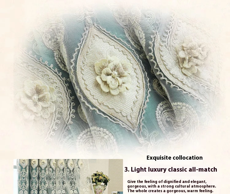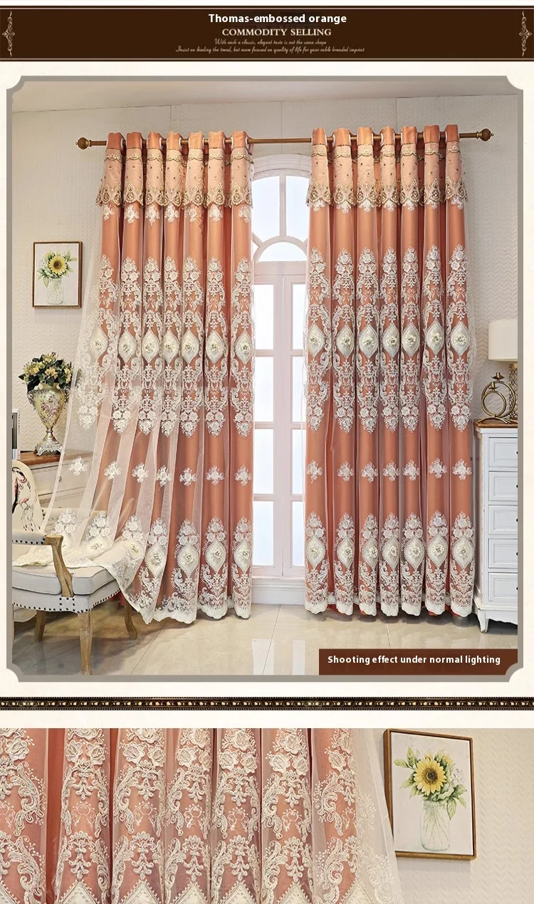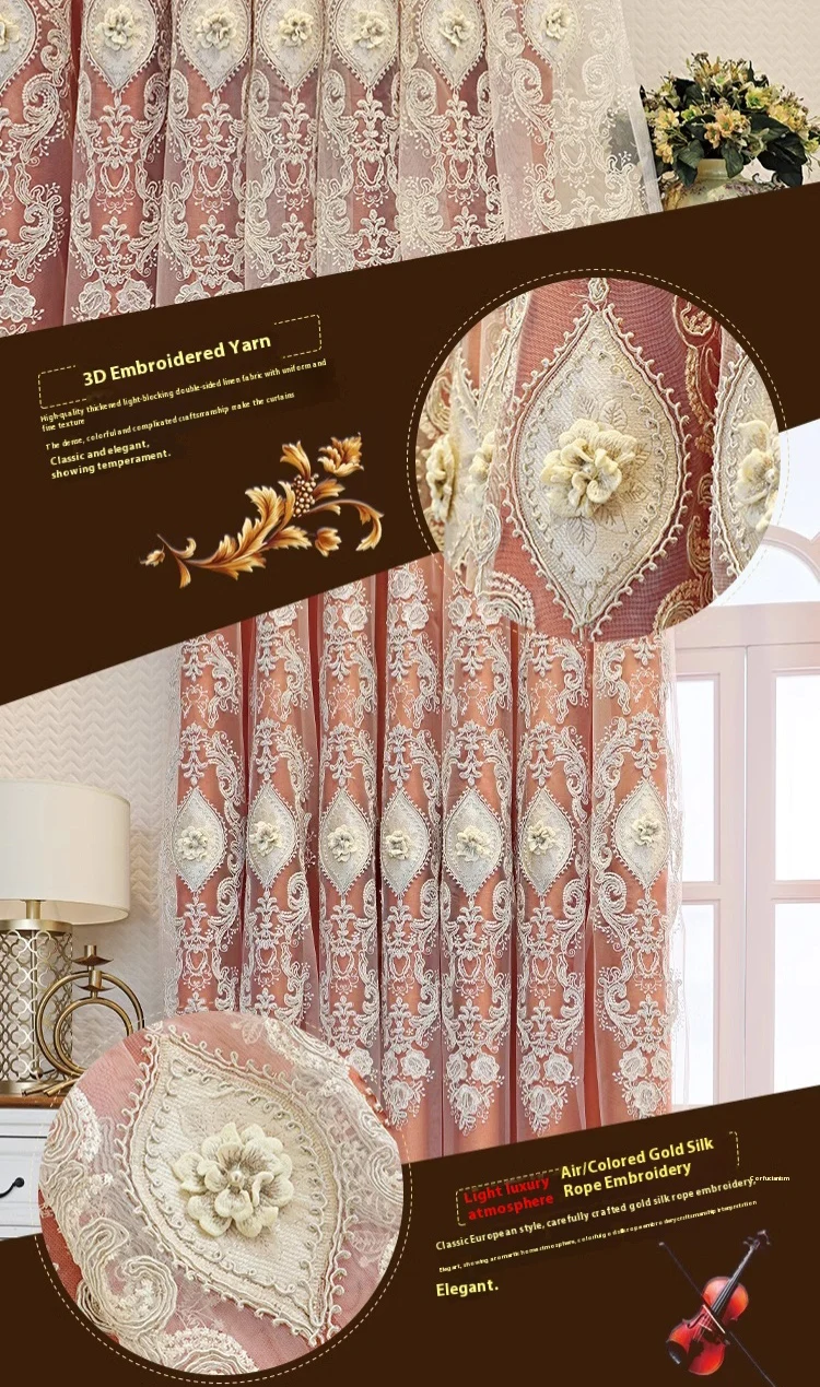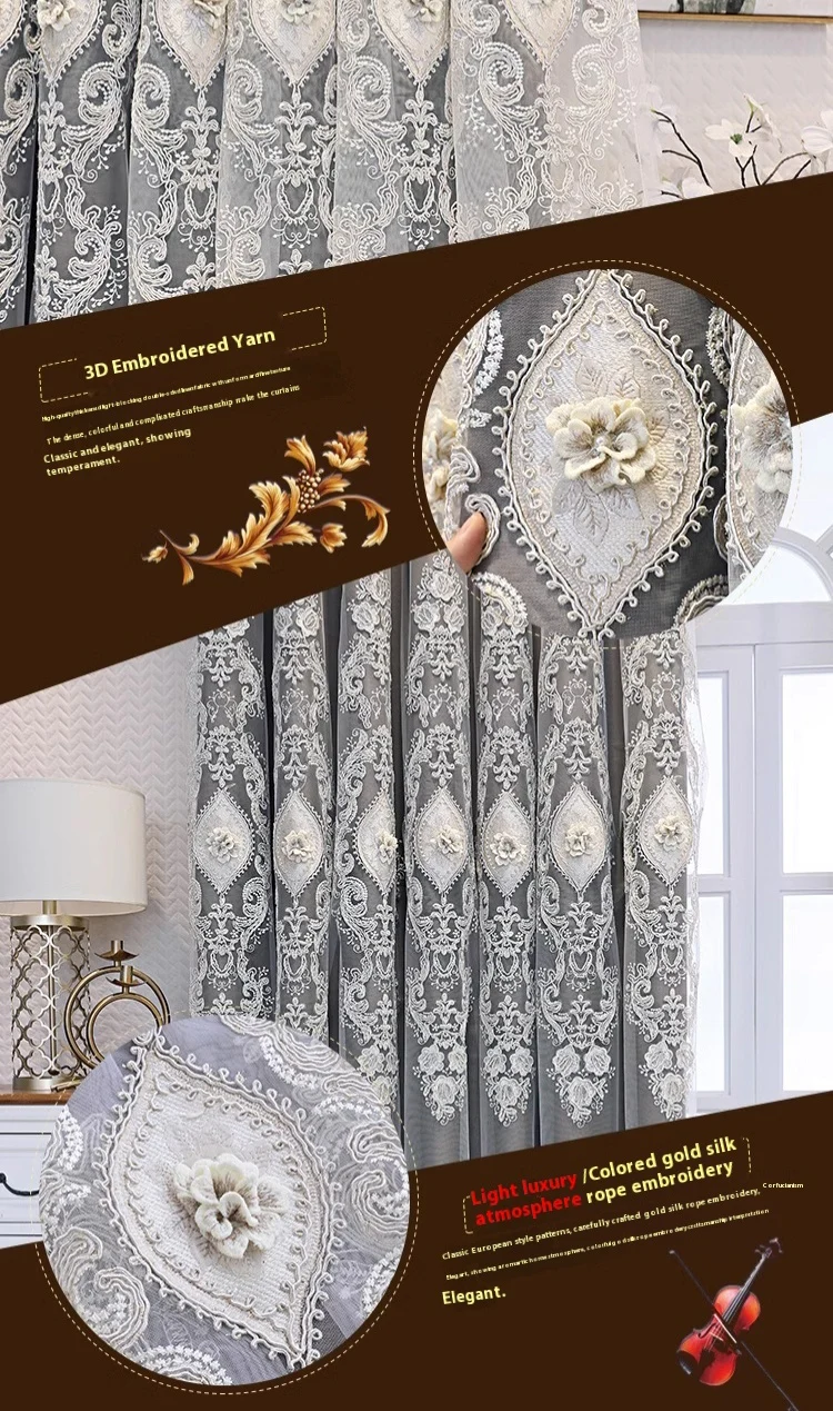 1PC Curtains,Luxury vintage-style embroidered curtains with 3D relief patterns, dual-layer design for privacy and light control