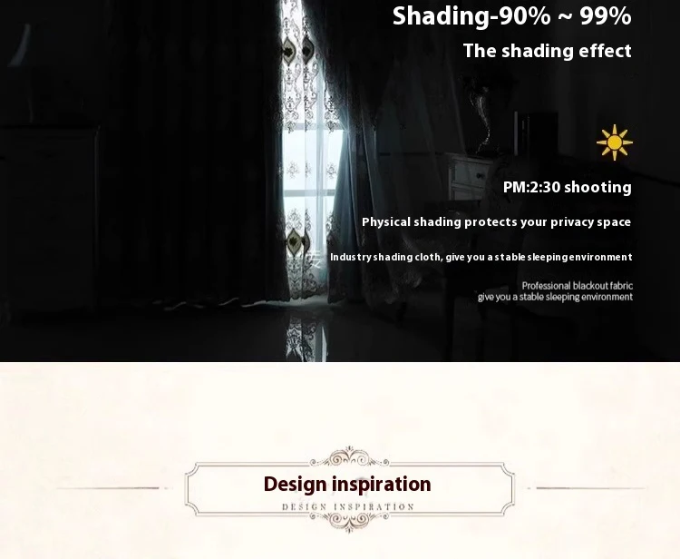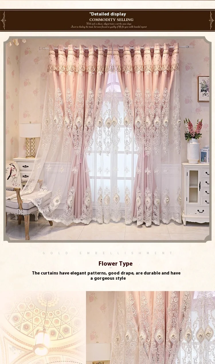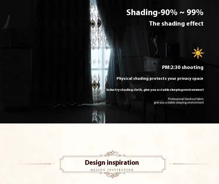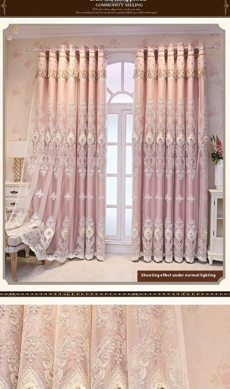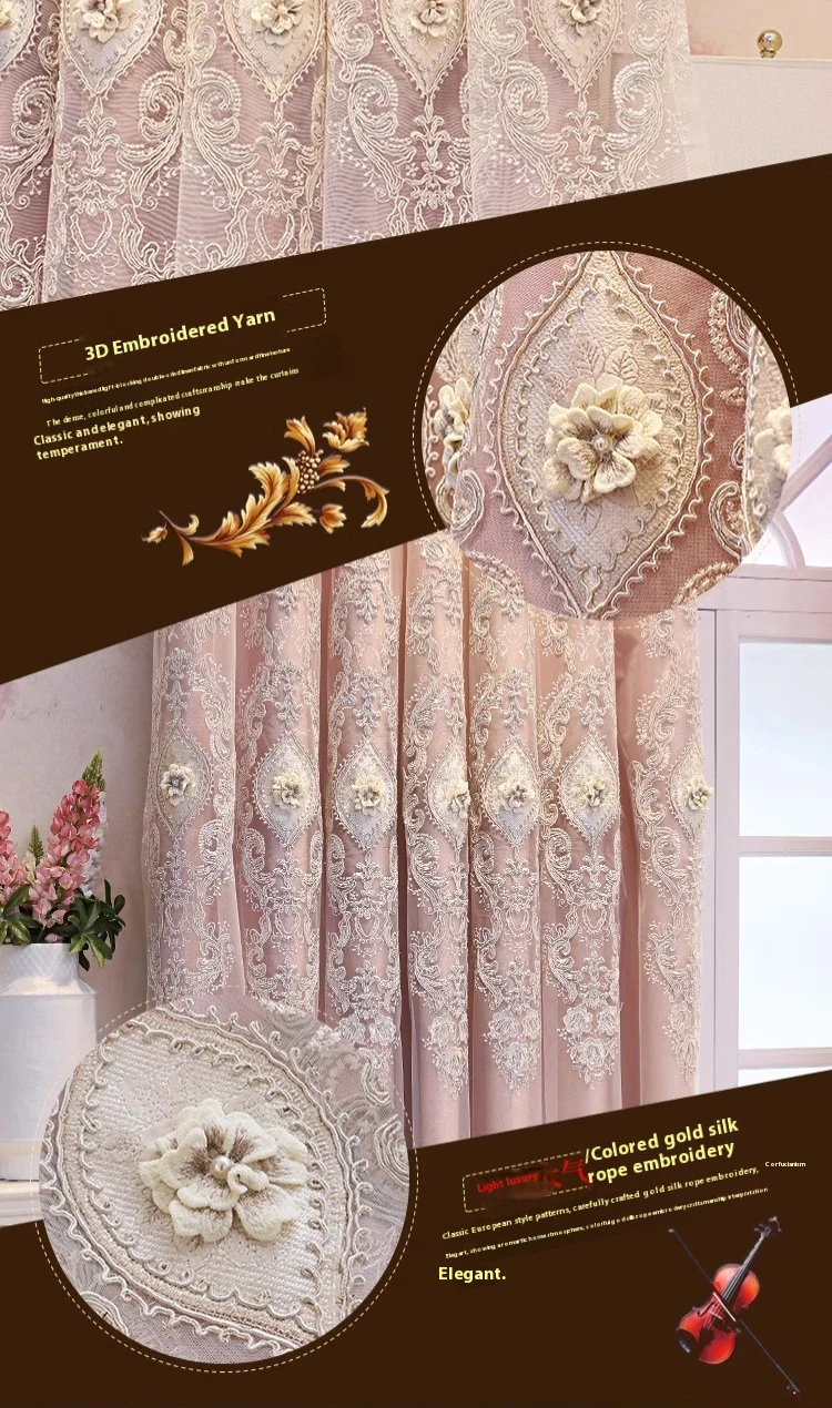 1PC Curtains,Luxury vintage-style embroidered curtains with 3D relief patterns, dual-layer design for privacy and light control