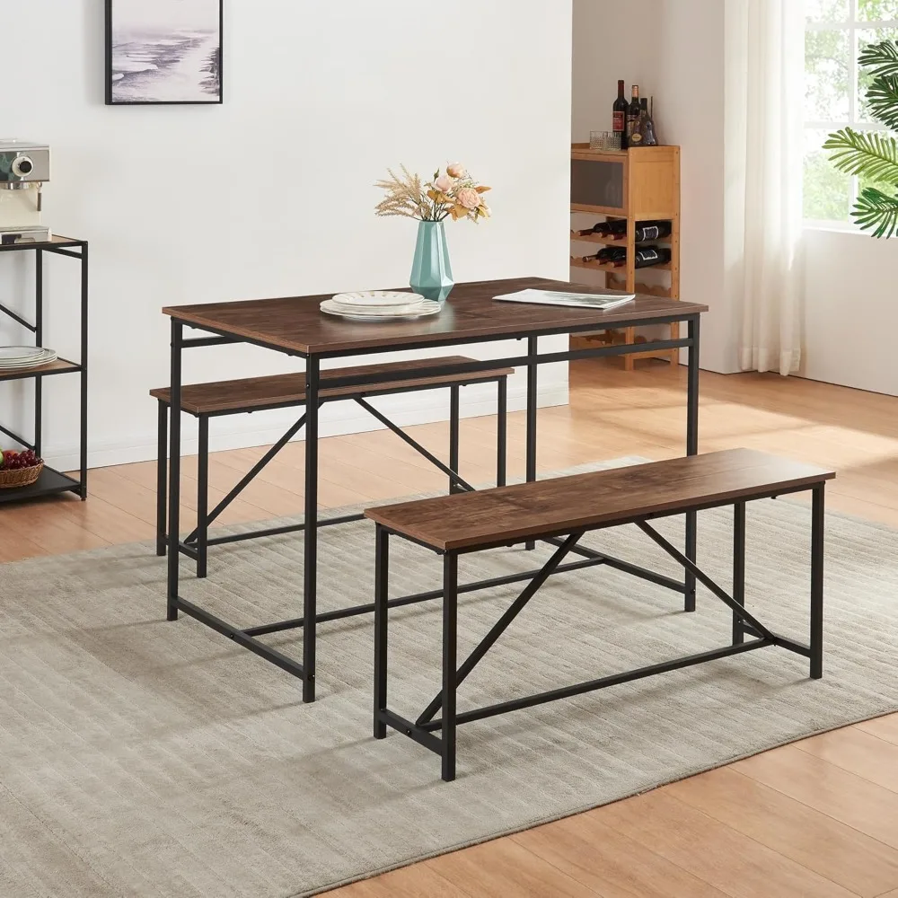 Transform your dining experience with the 3 Piece Dining Room Table Set. This stylish and functional set features a spacious 43-inch kitchen table complemented by two sturdy benches, making it the perfect addition to any dining area or breakfast nook.