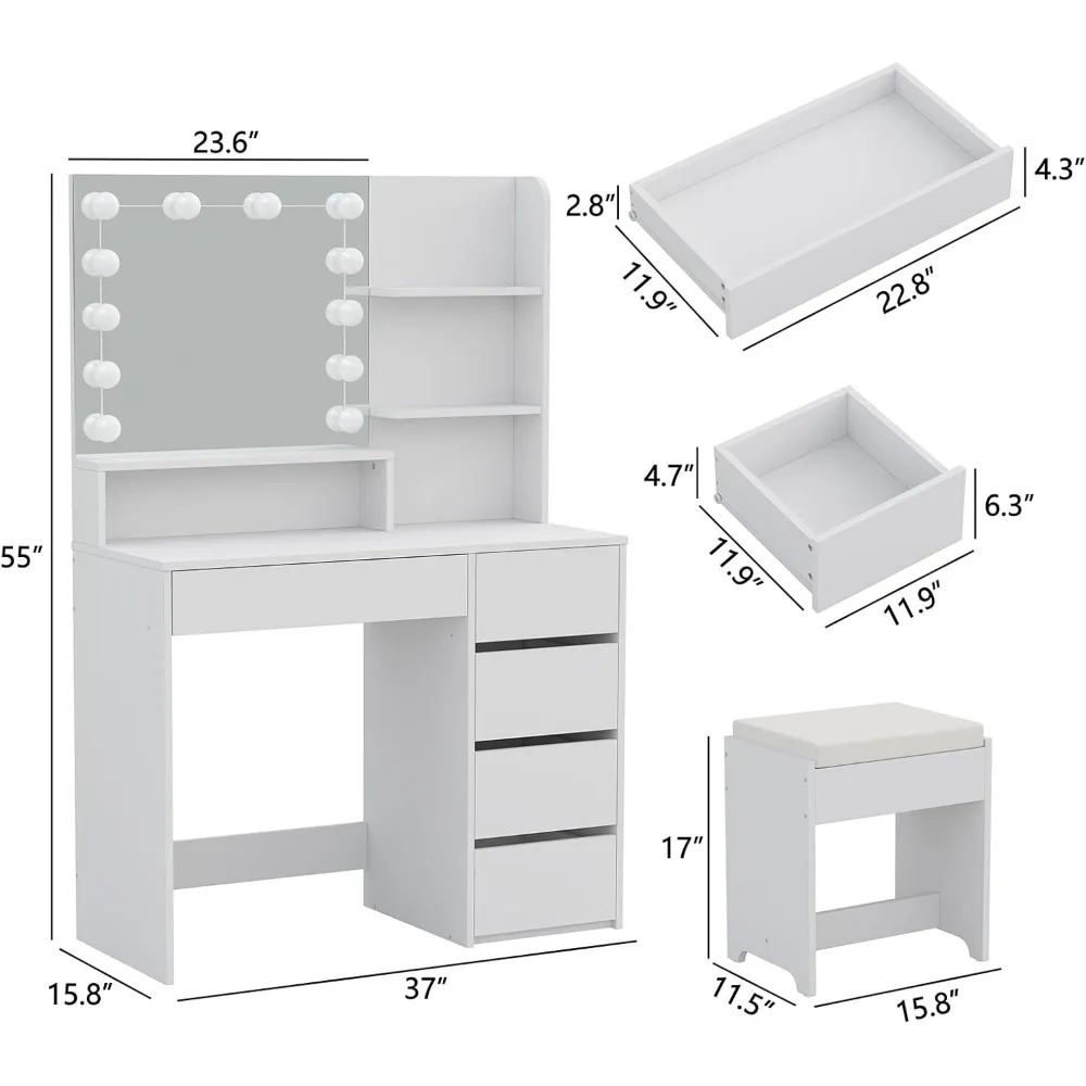 Dimensions of 15.8"D x 37"W x 55"H ensure it is compact yet functional, perfect for bedrooms of all sizes. Elevate your daily routine with this stunning vanity set, where style meets convenience!
