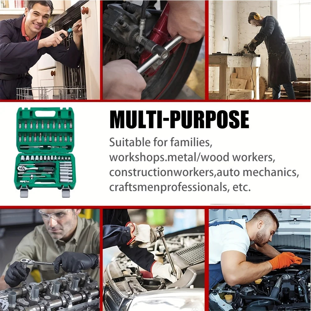 53pcs, 1/4 Inch Drive Socket Ratchet Wrench Set, Bit Socket, Metric And Extension Bar Set For Automotive Repair