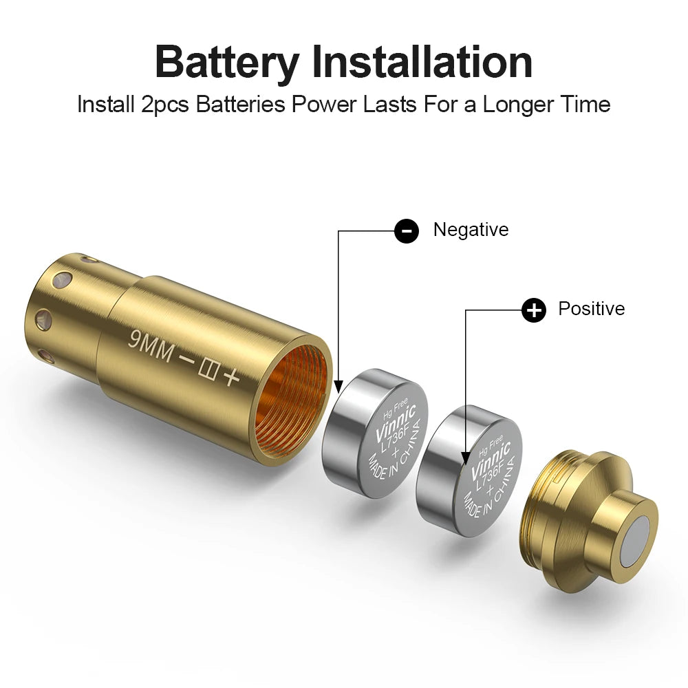 9MM Optics Cartridge Red Dot Laser Bore Brass 9MM Bore Boresighter For Pistol Rifle Scope Hunting Accessories 6 Batte