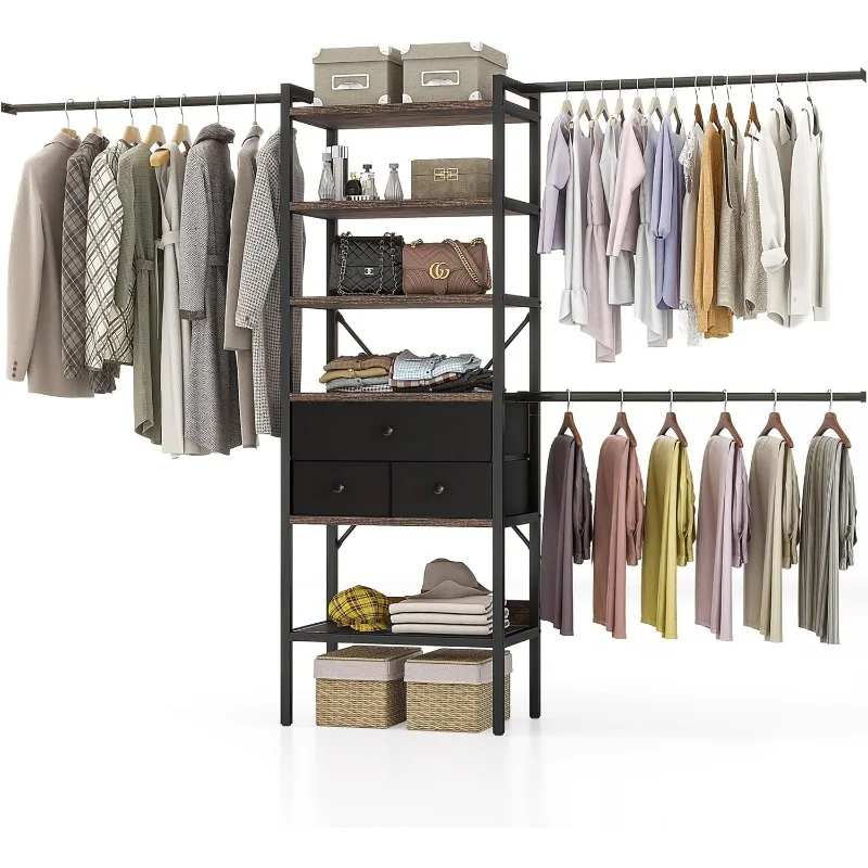 Adjustable Closet System with Drawers Three Hanging Rods and Five Shelves Heavy Duty Storage Organizer for Home Bedroom and Closet