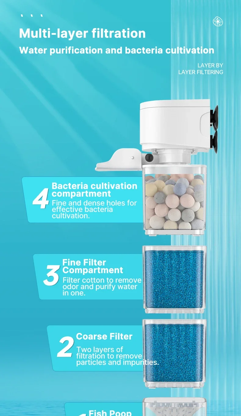 Aquarium Filter Pump Fish Tank Submersible Silent Air Oxygen Aerator Internal Water Pump Aquarium Air Pump Wave Maker 220v