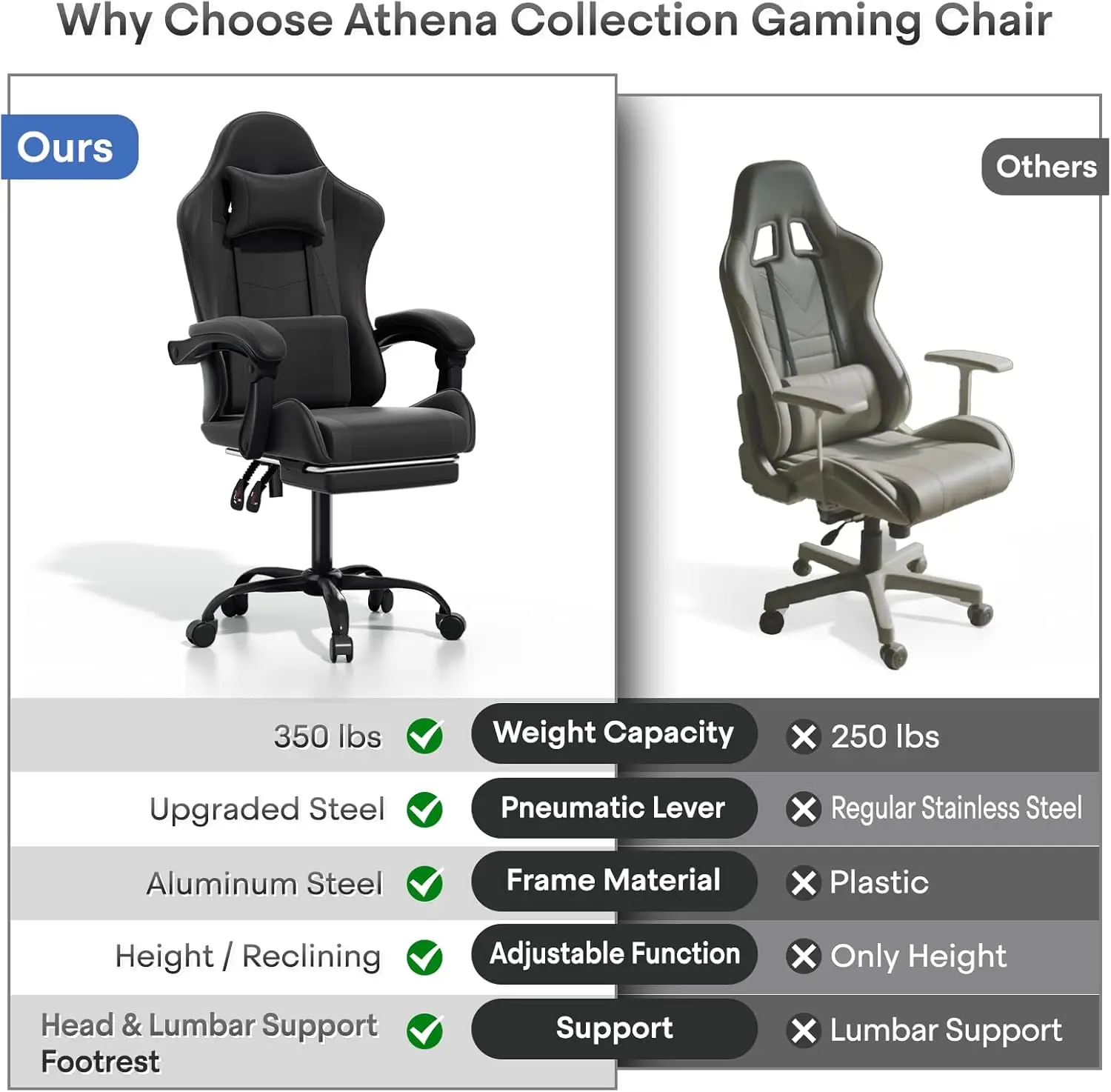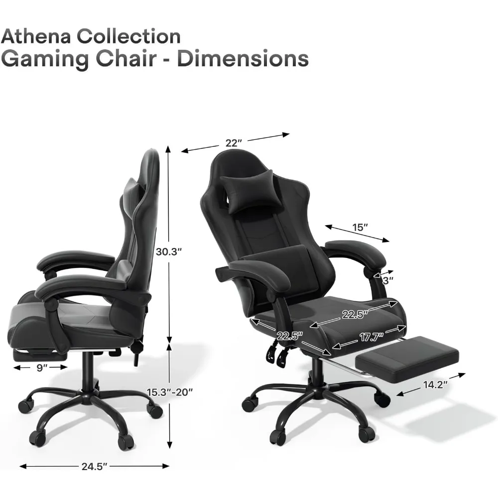 Athena Collection Carbon Fiber Black Gaming Chair - Ergonomic with Footrest Headrest Lumbar Support Height Adjustable Swivel