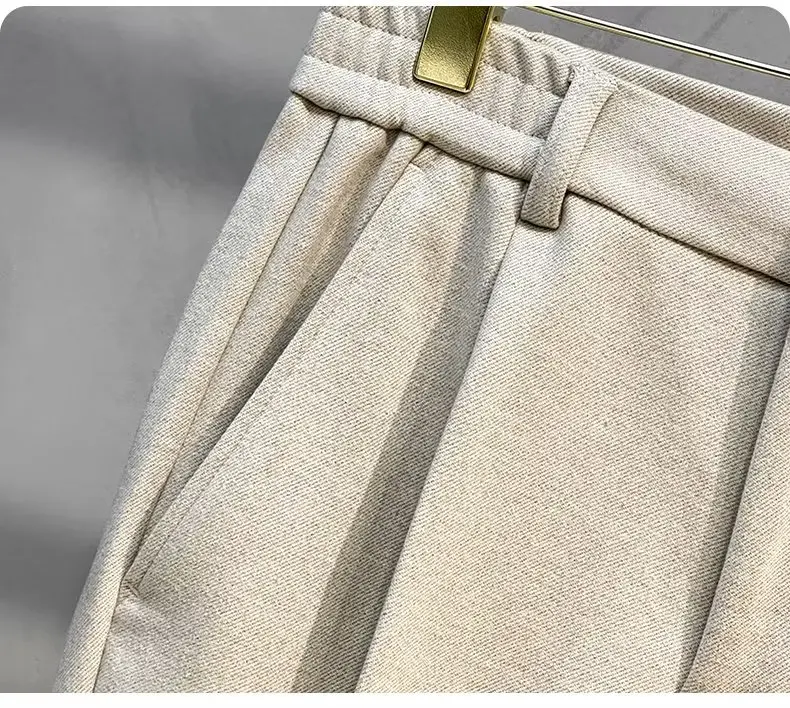 Autumn Winter New Men's Woolen Suit Pants Korean Fashion Slim Straight Elastic Waist Formal Business Tapered Brown Trousers