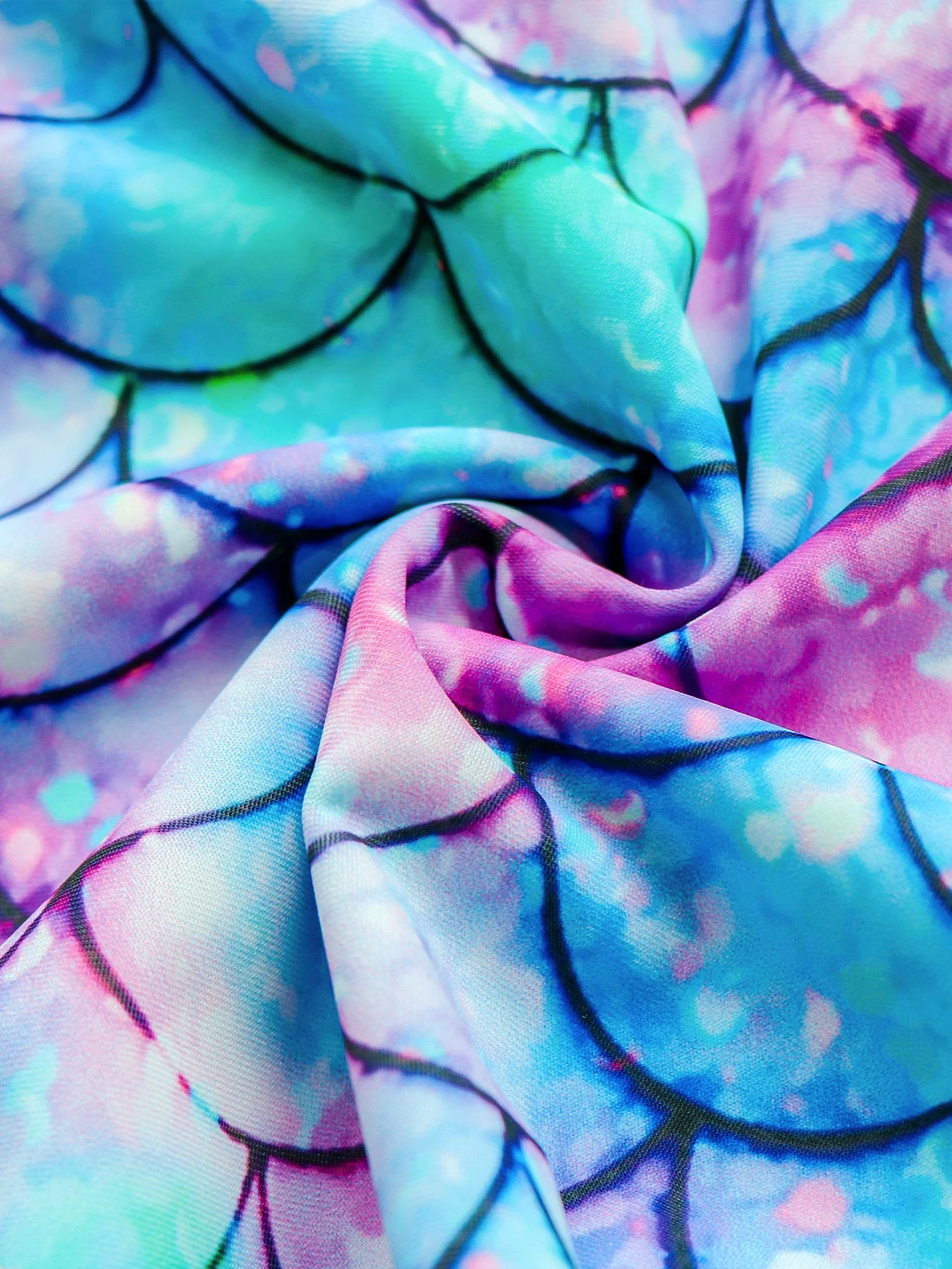 Bikini Cut One Piece Swimsuit for Girls 3D Scale Mermaid Princess Tiered Flounces Panel Summer Cross Strap Backless Swimwear