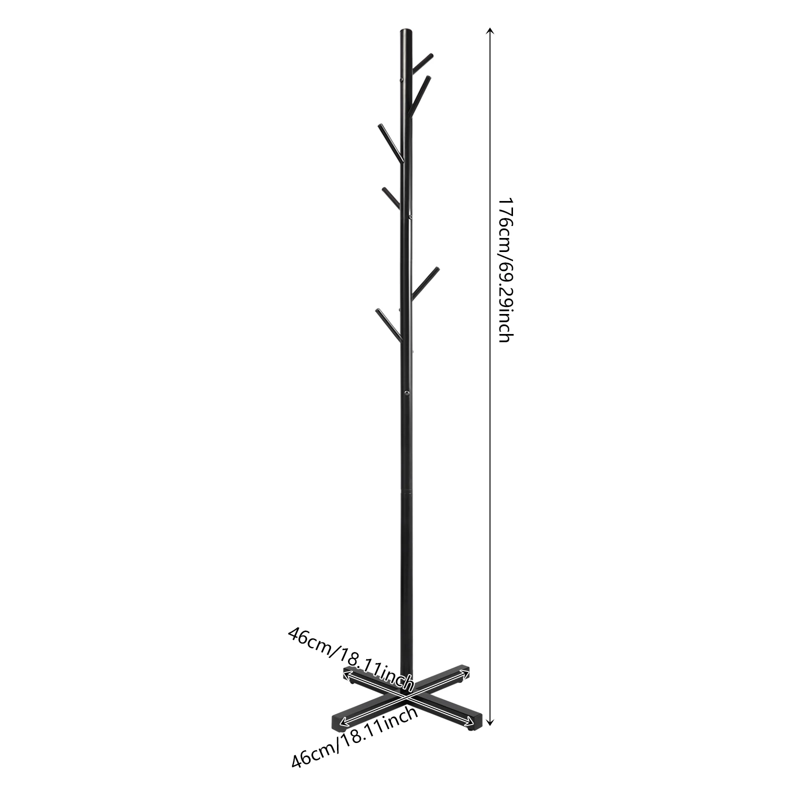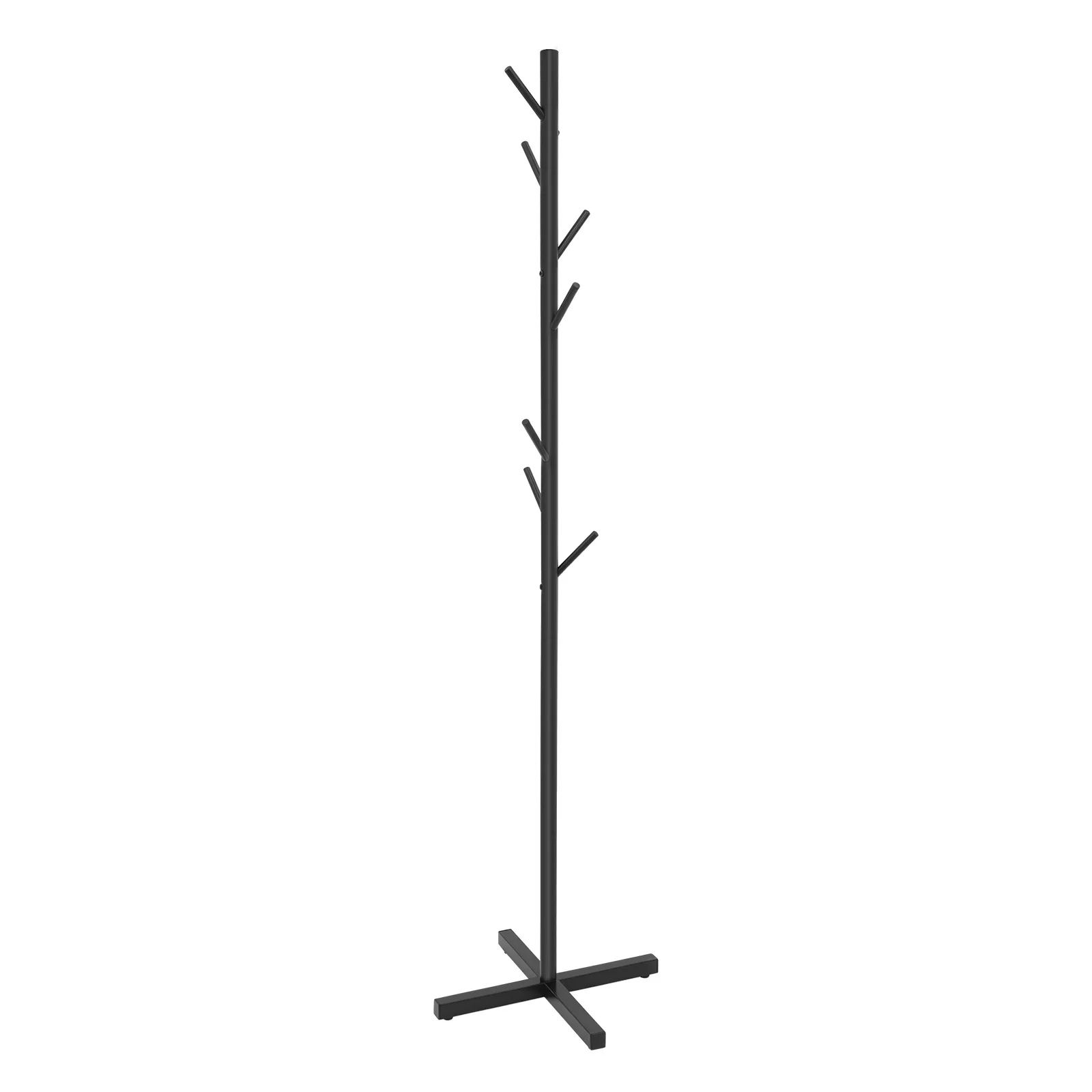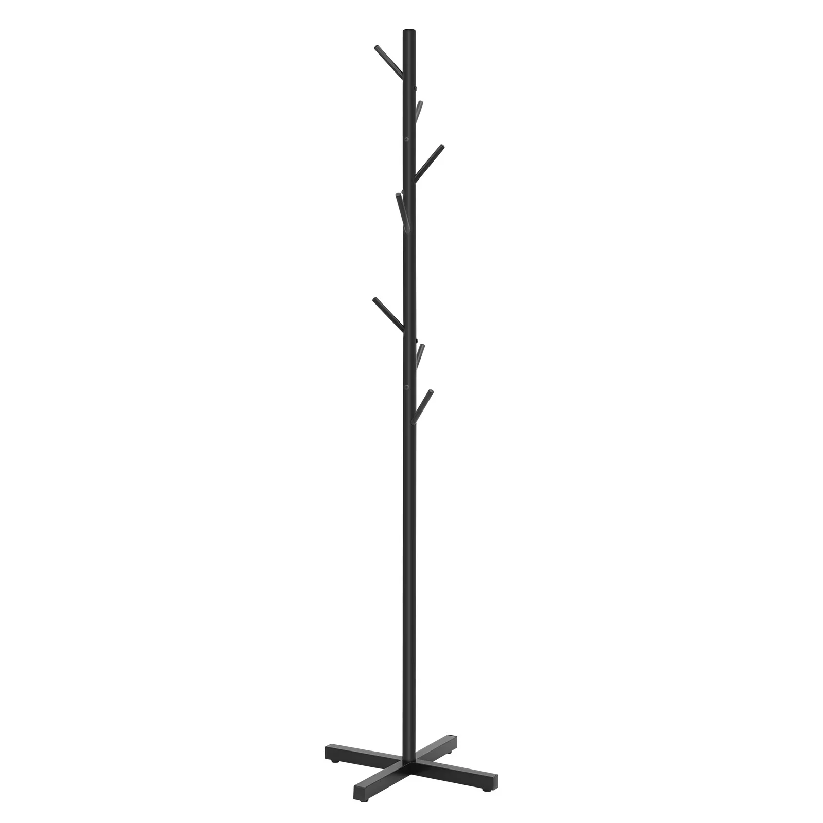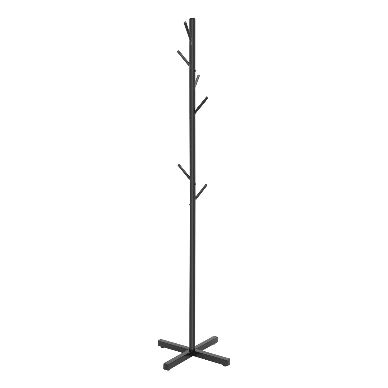 Black Metal Coat Rack Tree-Shaped Vertical 7 Hook Floor Standing Hanger Storage Rack Clothes Hat Scarf Holder for Entrance Foyer