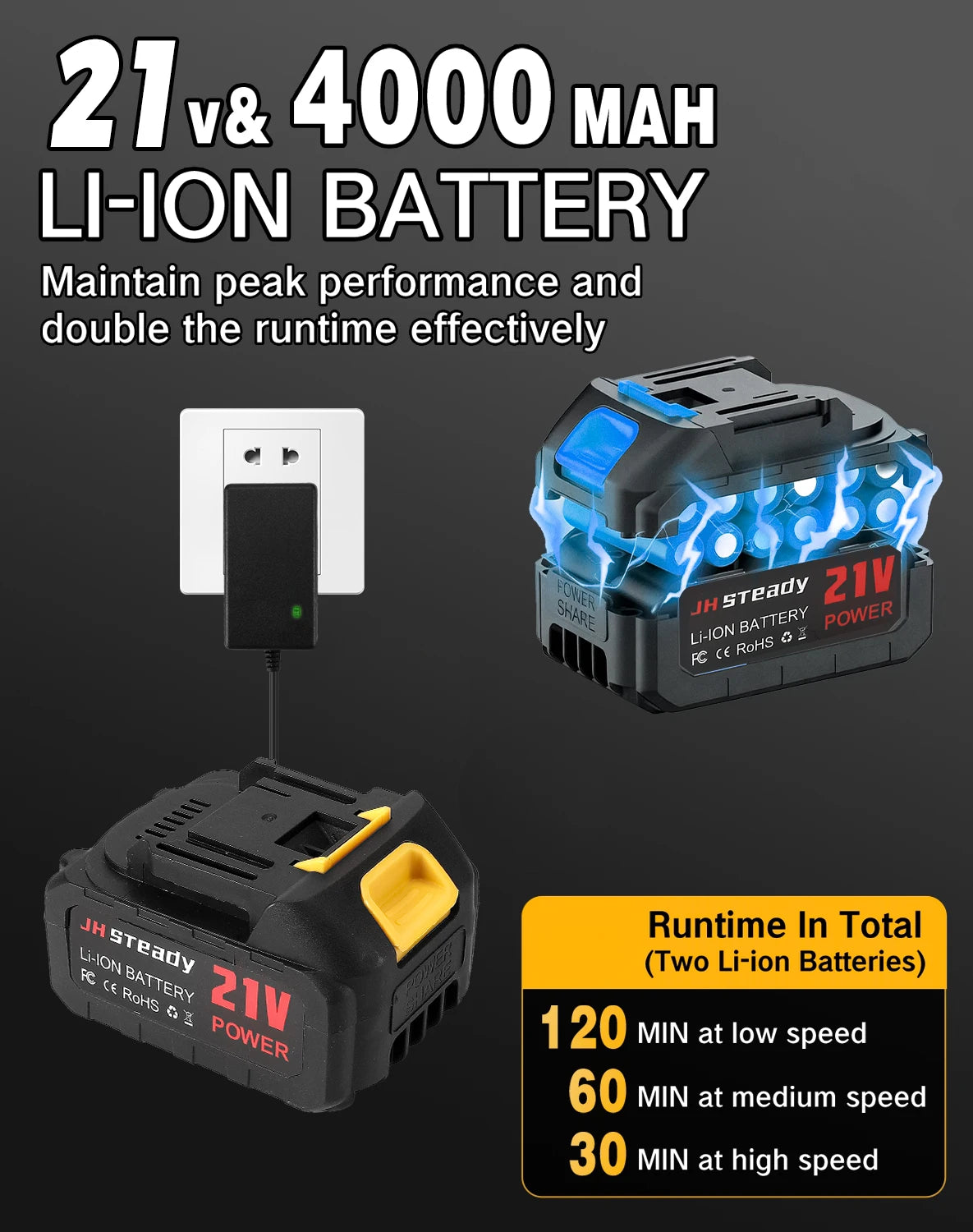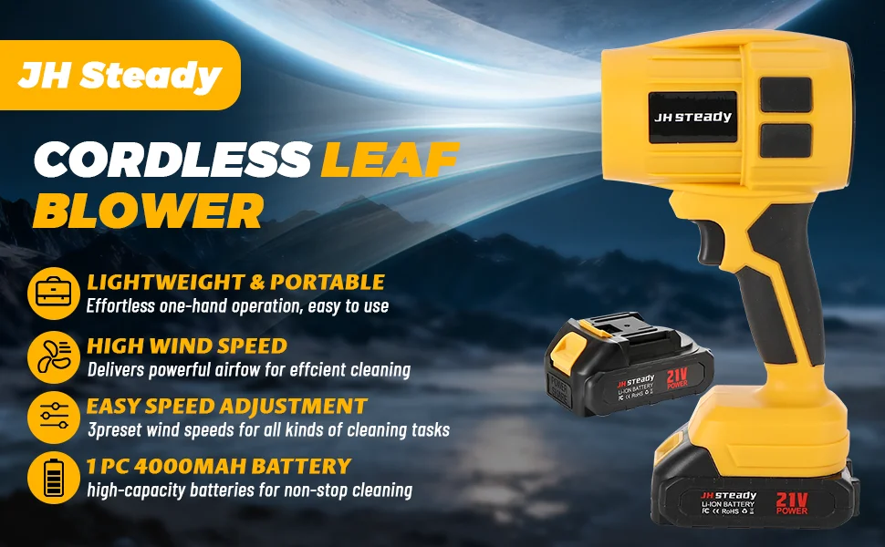 1.21V Cordless Leaf Blower, 4000mAh Lithium-Ion Battery + Stepless Variable Speed Mode;