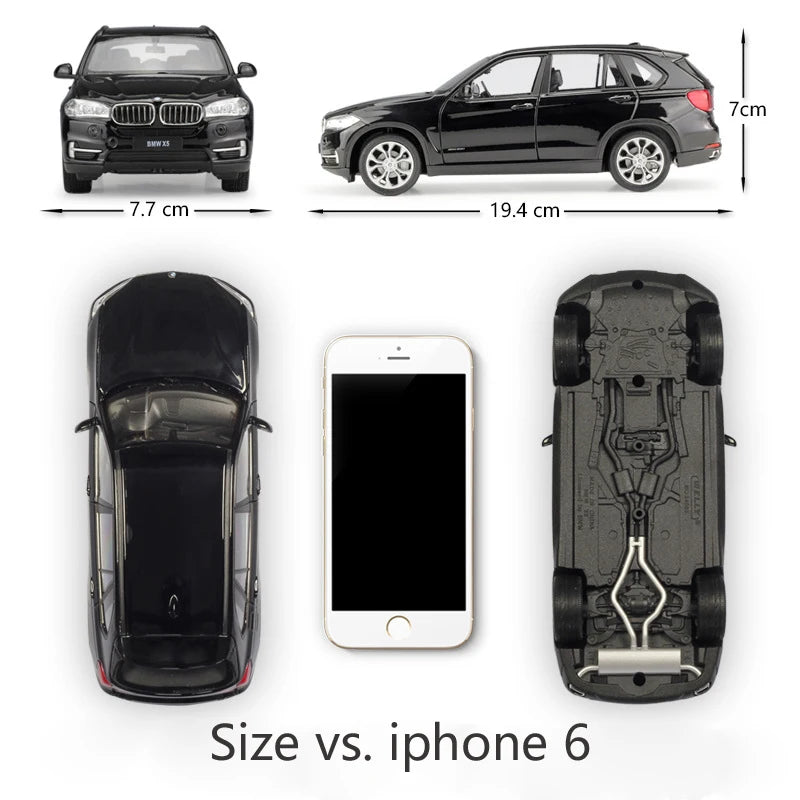 - Experience a realistic 1:24 scale BMW X5 diecast design with durable metal alloy and plastic construction for lasting play and display.