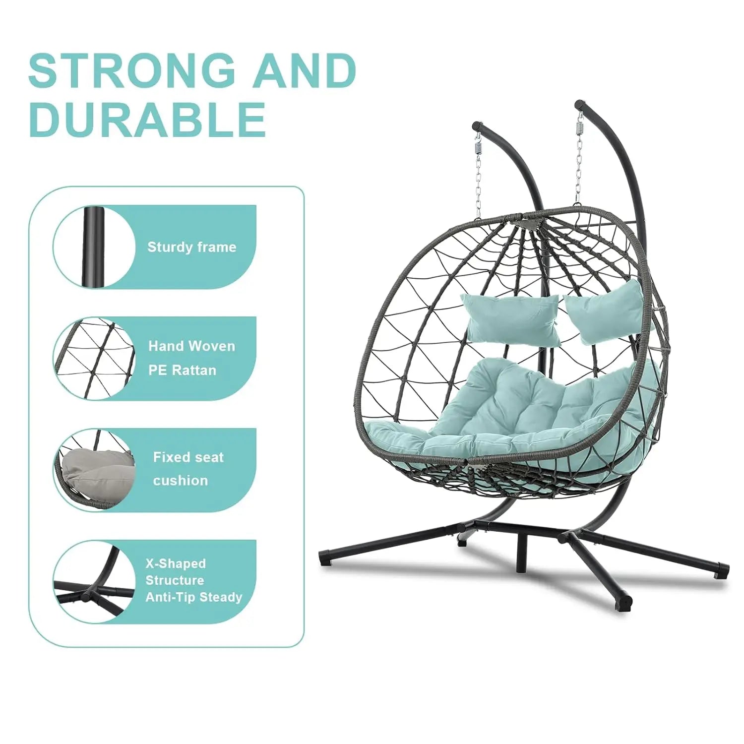 [Sturdy and Durable]: Hanging egg chair with stand's aluminum-steel frame and a sturdy heavy-duty steel stand ensures extend lifetime, and the sturdy stand provides stable support, the chain can hold up to 700 lbs, you can enjoy it for ears.