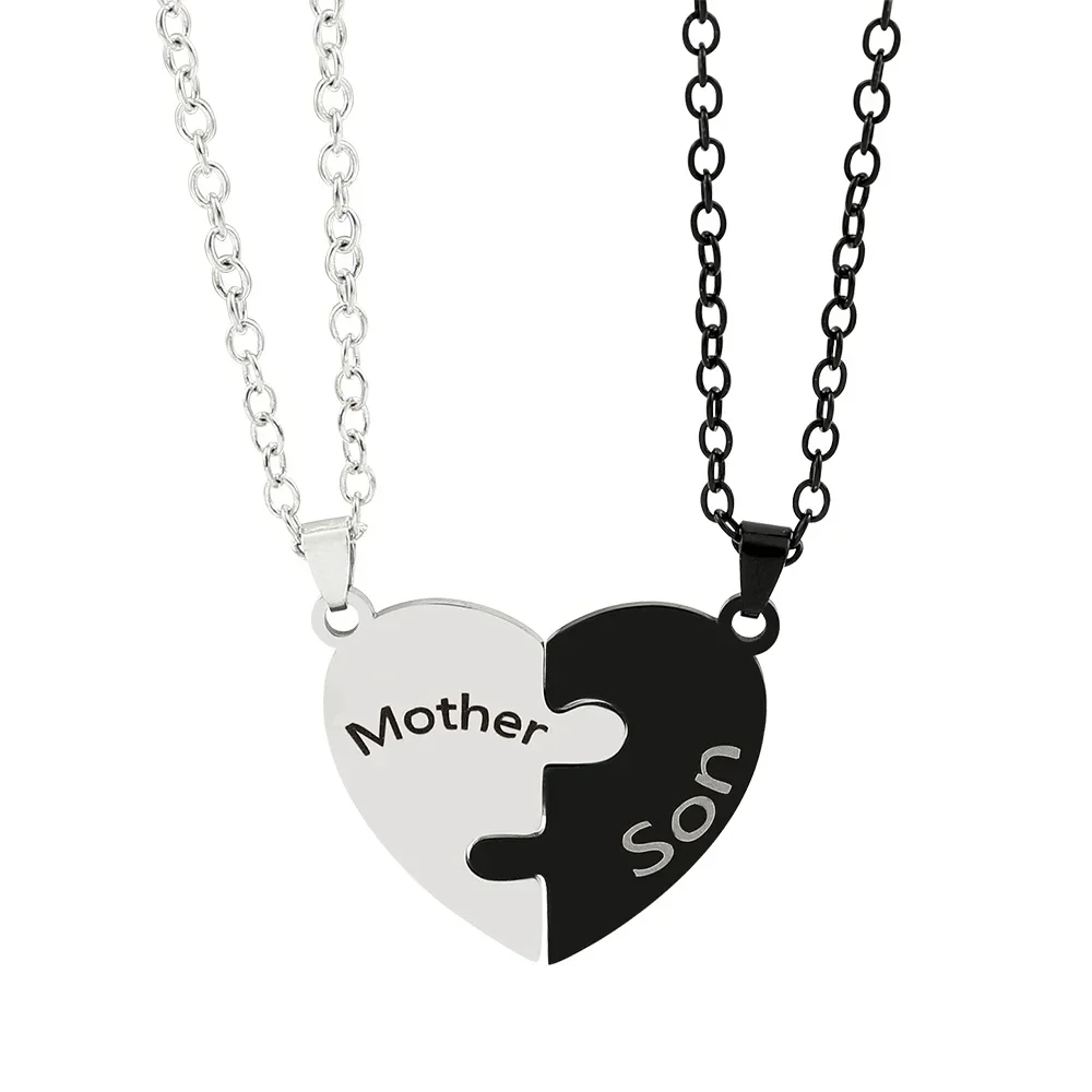 Family Heart Puzzle Necklace for Mom - Stainless Steel Mother Son Daughter Jewelry, Meaningful Mother's Day Gift for Women