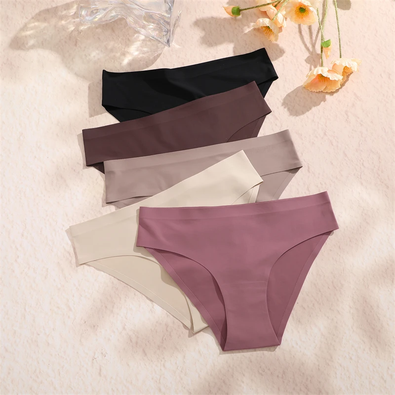 Finetoo 5PCS Seamless Panties for Women Sexy Ice Silk Underwear Solid Briefs Low Waist Comfortable Invisible Lingerie Intimates