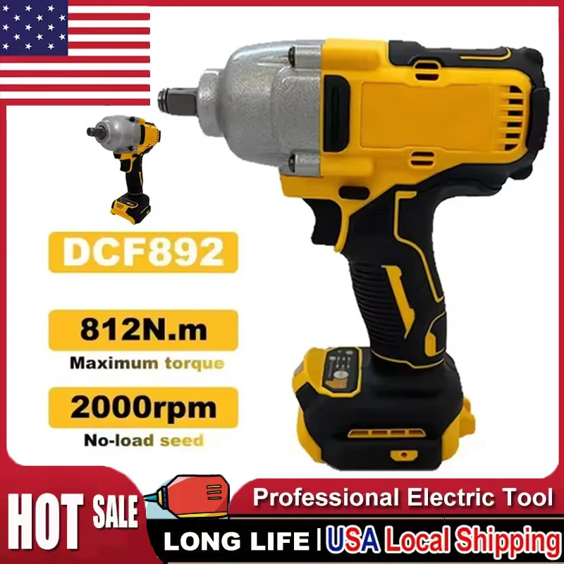 Fit Dewalt DCF892 812N.m Brushless Electric Wrench 1/2 Inch Cordless Impact Driver High Torque Three Speed Auto Repair Tools