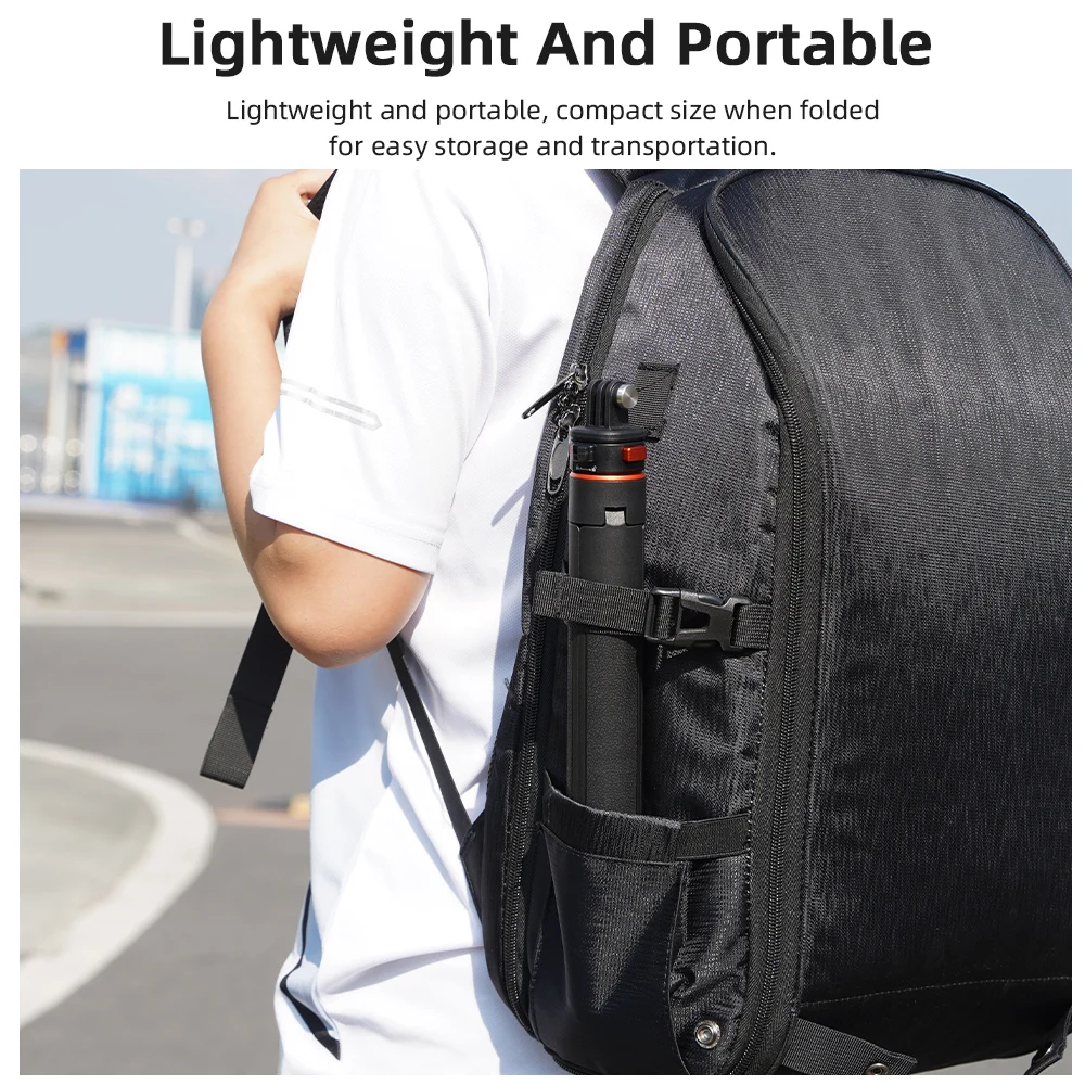 An innovative 2-in-1 design works as both a steady tripod and an extended selfie stick. This dual functionality provides diverse shooting options while maintaining a compact and portable form factor for easy transport.