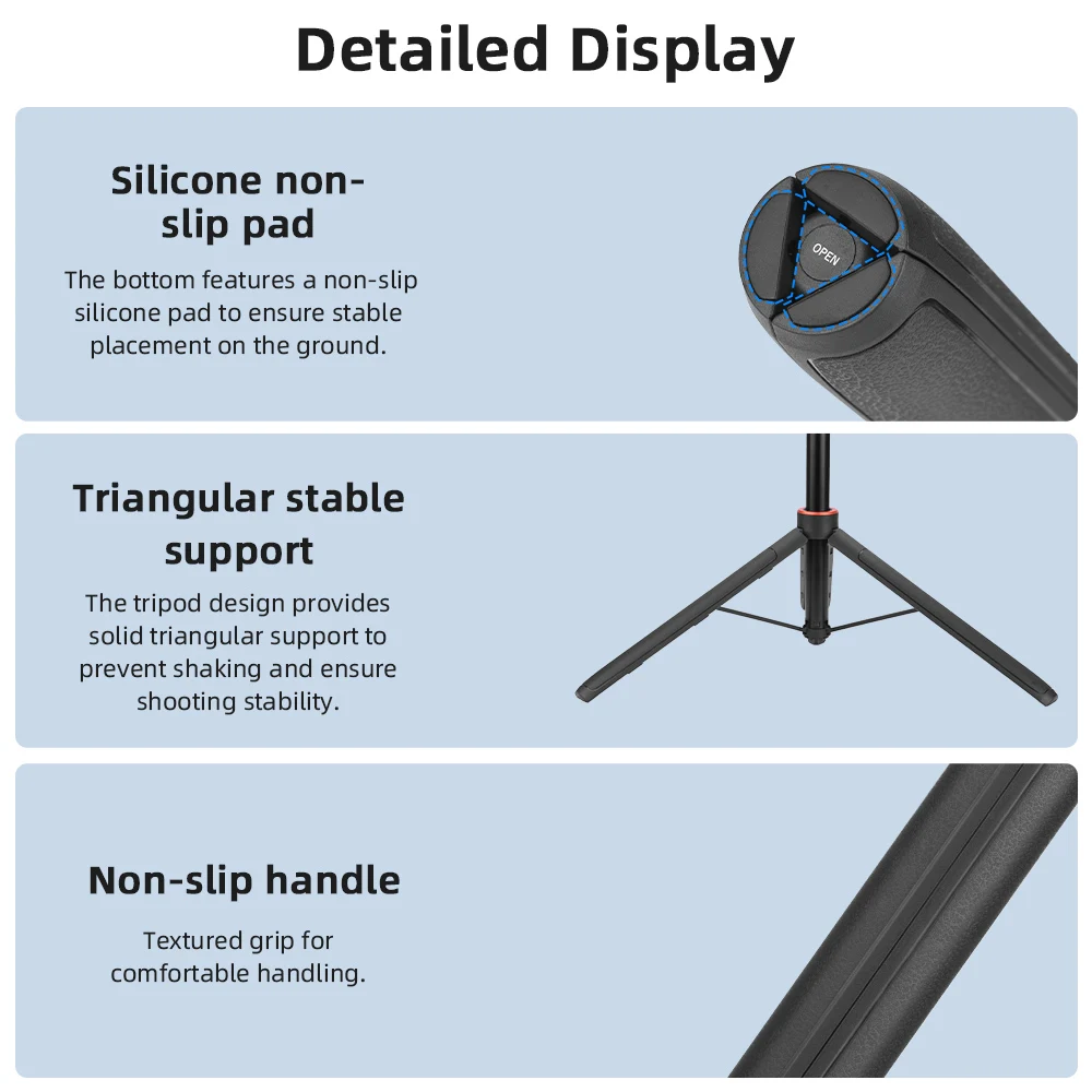 Constructed with a thickened alloy rod and a reinforced wide triangular base. This design provides a stable foundation for your camera, helping to reduce shake and maintain clear footage.