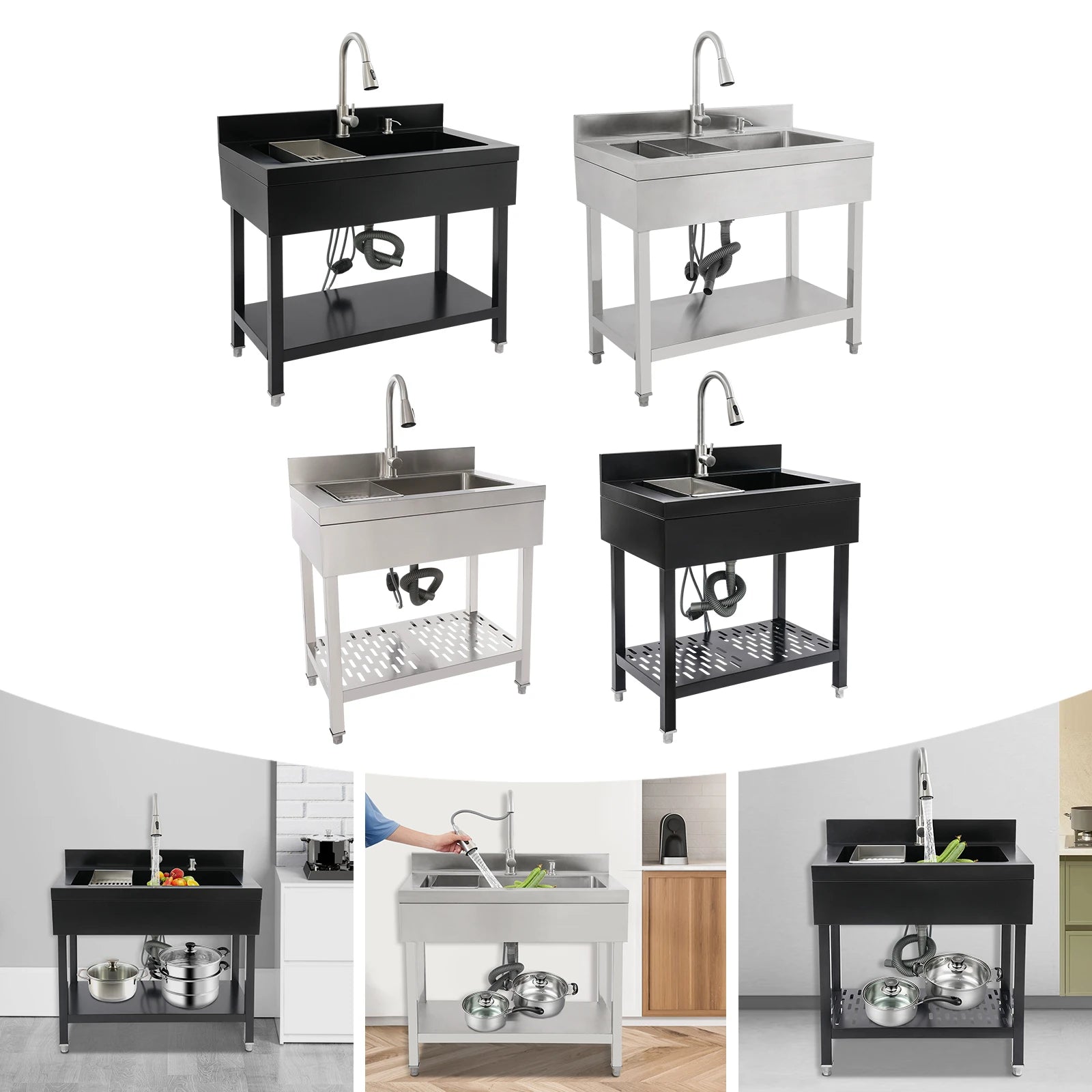 Freestanding 75*42cm/55*36cm Stainless Steel Utility Sink, Laundry&Utility Room Sinks, Rectangular Single Bowl Black/Silver