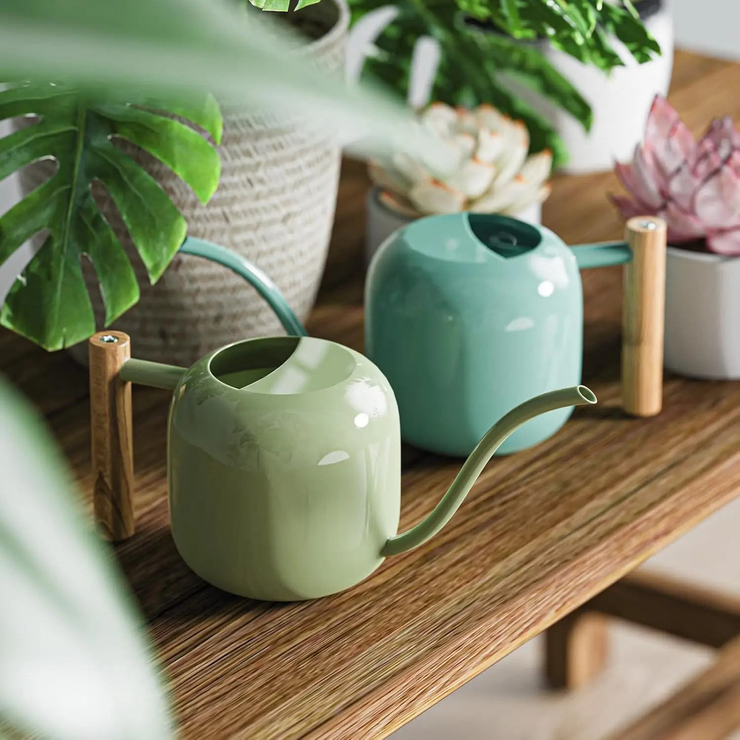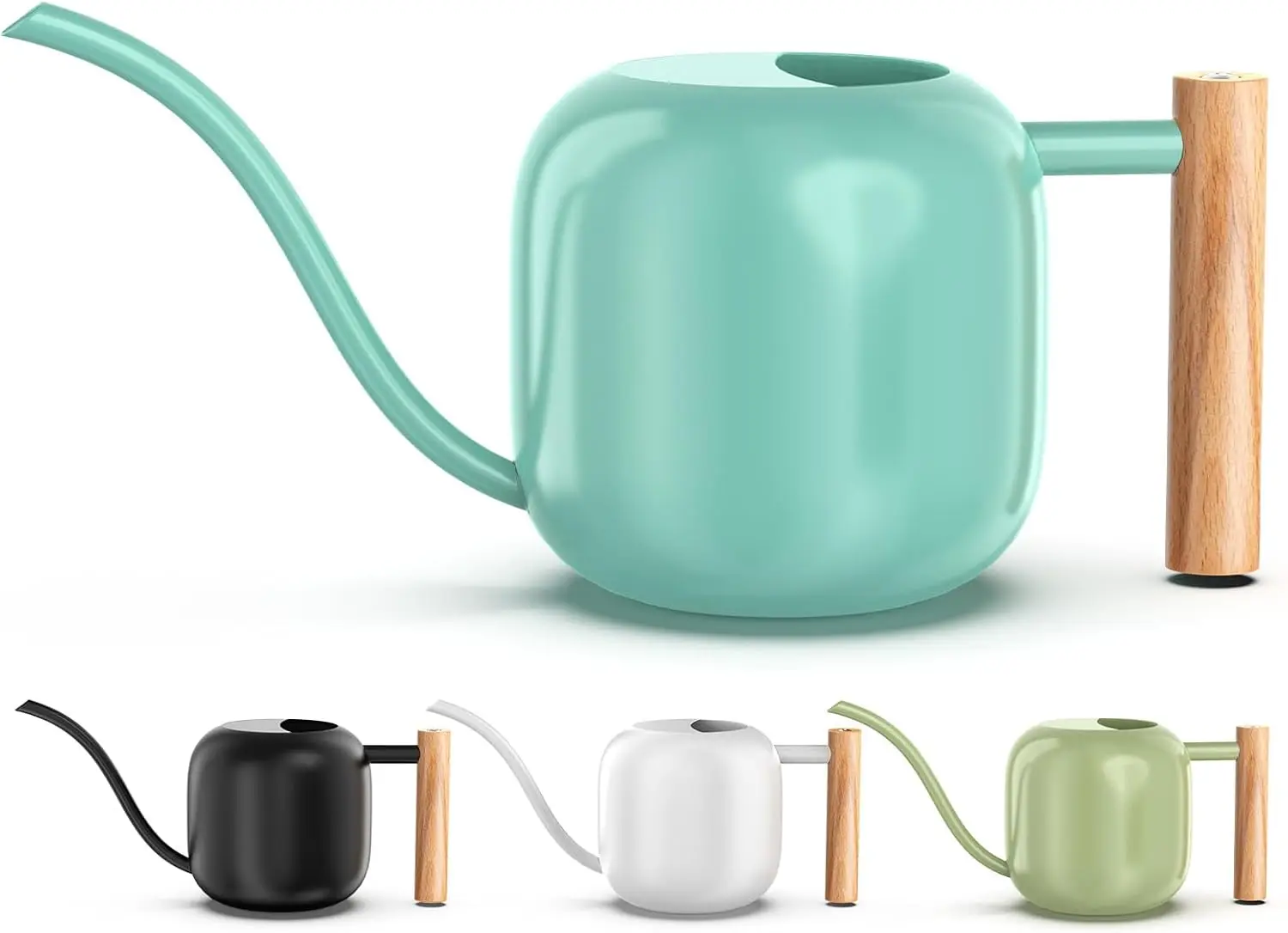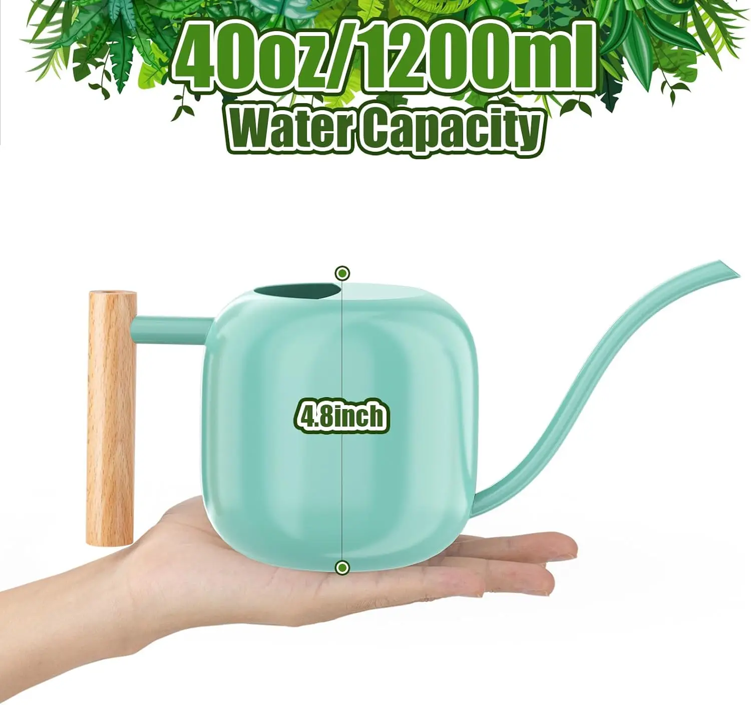 Enhance your gardening experience with our premium stainless steel water can, designed for both indoor and outdoor use. Key features include: - **Durable Construction**: Made from high-quality stainless steel, this water can is rust-resistant and built to last, ensuring long-term reliability in various environments. - **Optimal Capacity**: With a 1.2L (41oz) capacity, it provides ample water for watering house plants, bonsai trees, garden flowers, and more without frequent refills. - **Precise Watering**: The long spout allows for easy and accurate watering, reaching deep into pots or delicate areas without splashing or damaging plants. - **Versatile Design**: Suitable for indoor settings like living rooms or offices and outdoor spaces such as gardens or balconies, making it a versatile tool for all plant lovers. - **Easy to Use and Clean**: Lightweight yet sturdy design ensures comfortable handling, while the smooth surface facilitates quick cleaning after use. This water can combines functionality with style, featuring a sleek mint green finish that adds a touch of elegance to your gardening tools. It's perfect for hobbyists and professionals alike who value efficiency and aesthetics in their plant care routine. Invest in this reliable accessory to keep your plants healthy and thriving year-round.