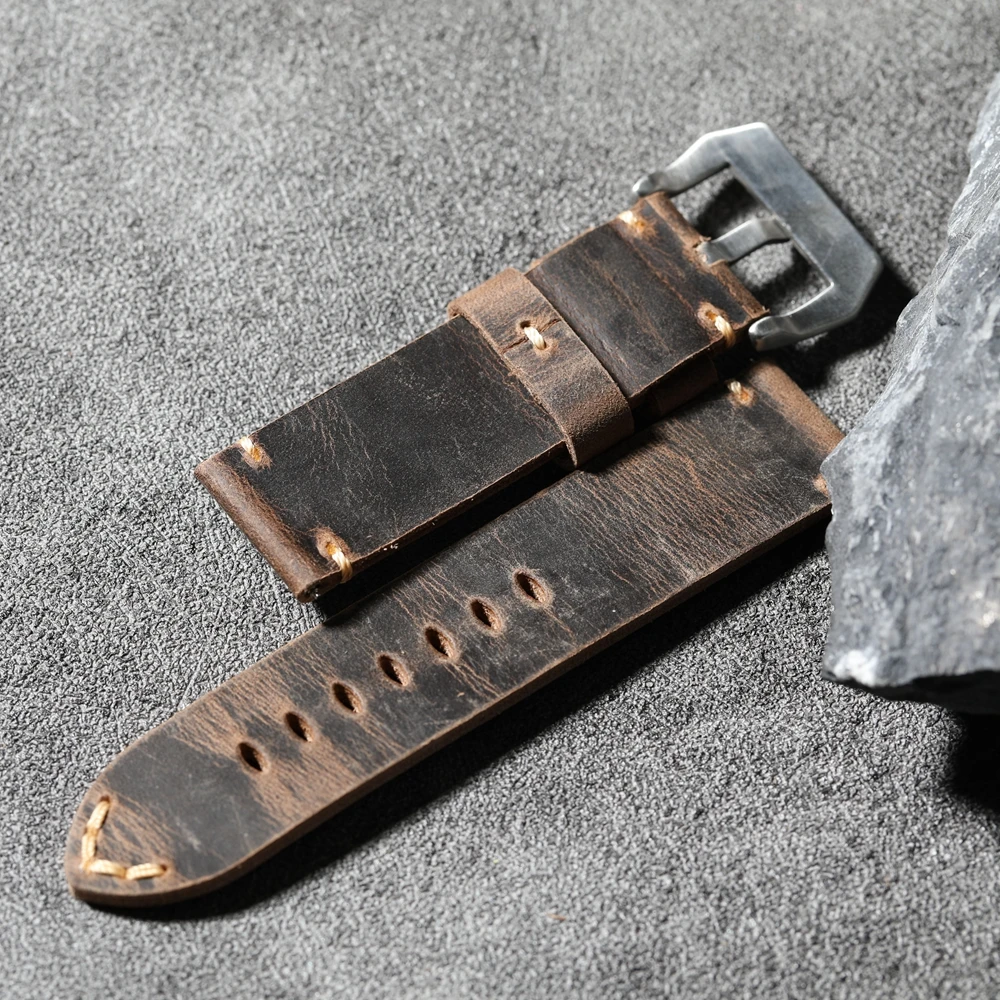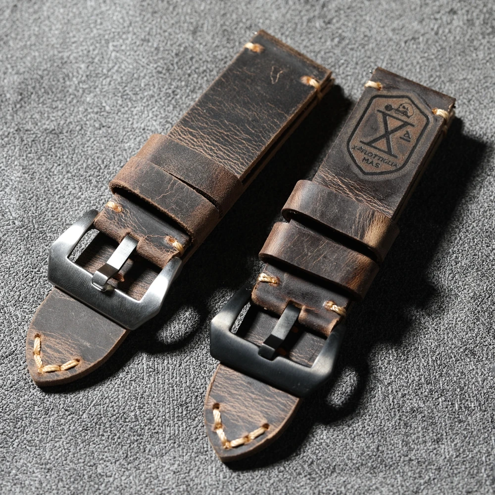 Handmade head layer cowhide leather strap, 20MM 21MM 22MM 23MM 24MM 26MM thickened genuine leather strap vintage folded without