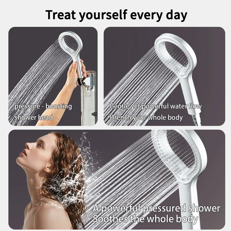 High Pressure Shower Head Hollow-ring Design Portable Handheld Filtered Shower Head Set Large Water Flow Bathroom Accessories