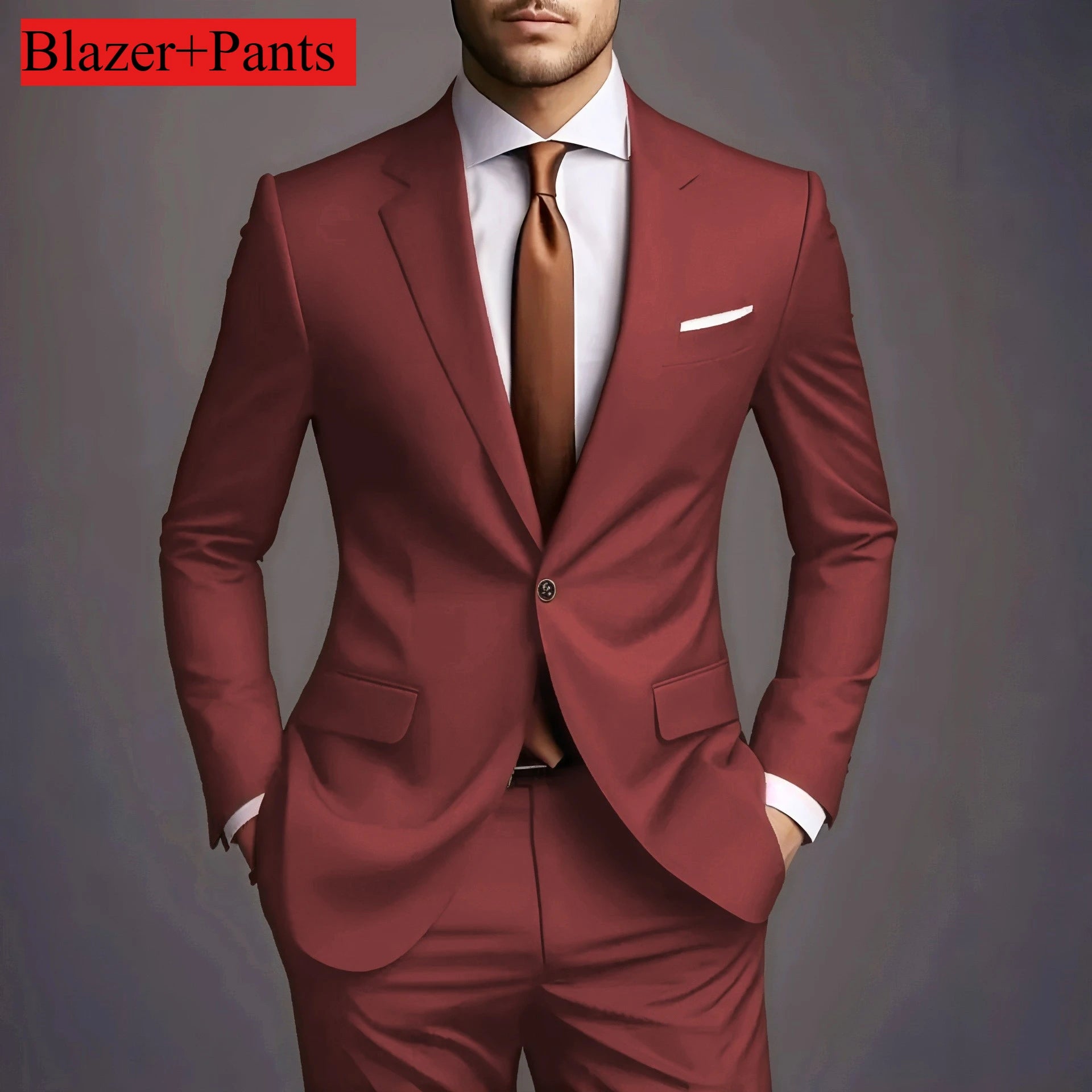 (Jacket +Pants) 2025 New Luxury Elegant Men's Suits 2 Piece Set Fashion Korean Casual Slim Fit Social Groom Wedding Tuxedo