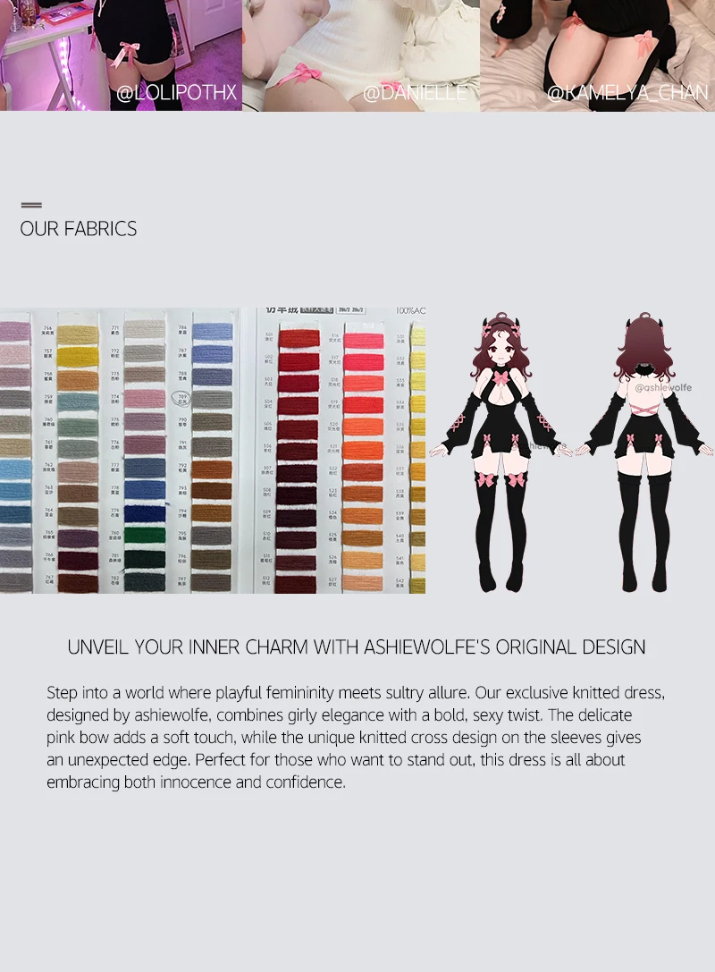 KORURACLUB autumn and winter Bowknot Sexy Black Knitted dress stockings Pink straps Backless Soft girl Turtleneck sweater
