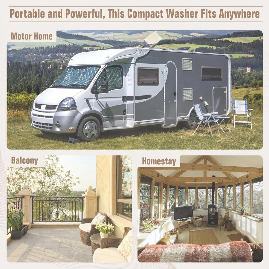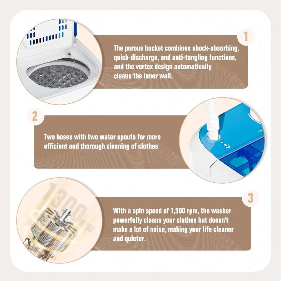 Portable Washing Machine16 lbs Mini Washer and Spin Dryer Combo Built-in Gravity Drain Compact Laundry Washer with Drain Pump T