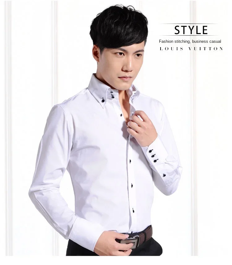 Designed with a turn-down collar and a classic single-breasted closure, this shirt is a staple for any man's closet. Its non-iron, wrinkle-resistant fabric ensures you remain sharp and polished without the hassle of frequent ironing, allowing you to focus on what truly matters.
