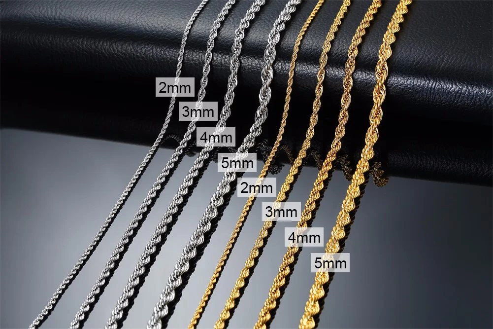 2mm to 5mm Finish Rope Chain. Only available this unique piece will set you apart from the rest. Bringing this new piece to your life today.