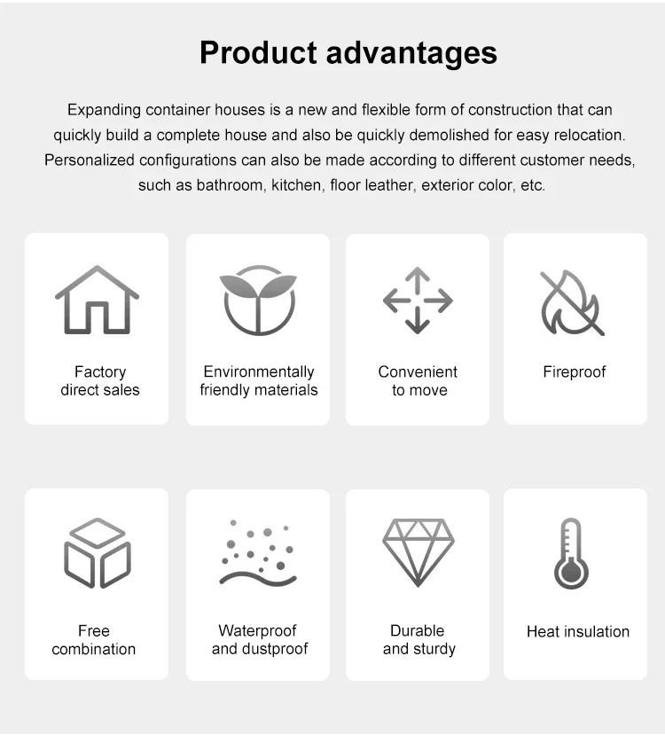If you value individuality and flexibility, our Container Modular Homes are made for you. Each module is like a building block of dreams, allowing you to configure them according to your unique vision. Whether it's a snug family home or a large - scale commercial complex, the possibilities are endless. The modular design also means easy expansion or reconfiguration in the future,adapting to your changing needs over time.Container Expandable Homes Looking to maximize space within a compact footprint Our Container Expandable Homes offer a smart solution. With a simple mechanism, they can expand the living or working area on - site. Ideal for a beachfront resort where you can add more guest rooms as demand grows, or for a growing business in need of extra office space. It's a flexible option that evolves with your requirements.