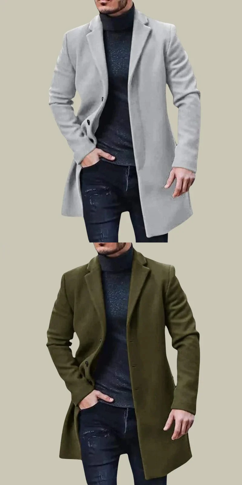 Warm Men's Woolen Coat Pure Color Medium-Length Windbreaker Outerwear in Various Colors And Sizes European Sle Autumn Faion
