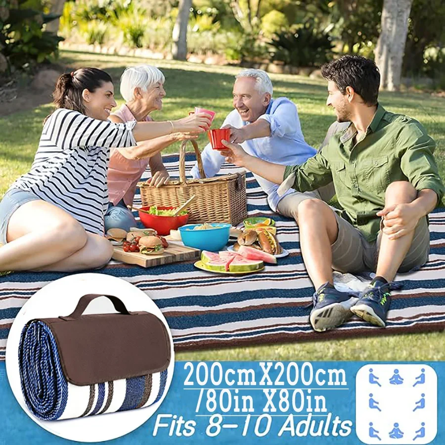 Waterproof Sandproof Foldable Outdoor Extra Large Picnic Blanket Fashion Handy Tote Beach Mat for Spring Summer Camping