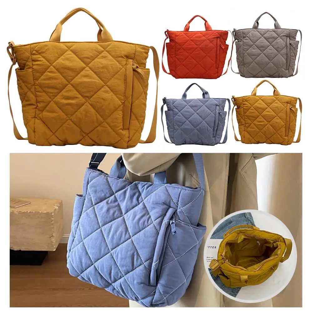 Women Quilted Tote Bag Lightweight Fluffy Crossbody Bag Large Padded Shoulder Bag Satchel Travel Bag Winter Shopper Bag